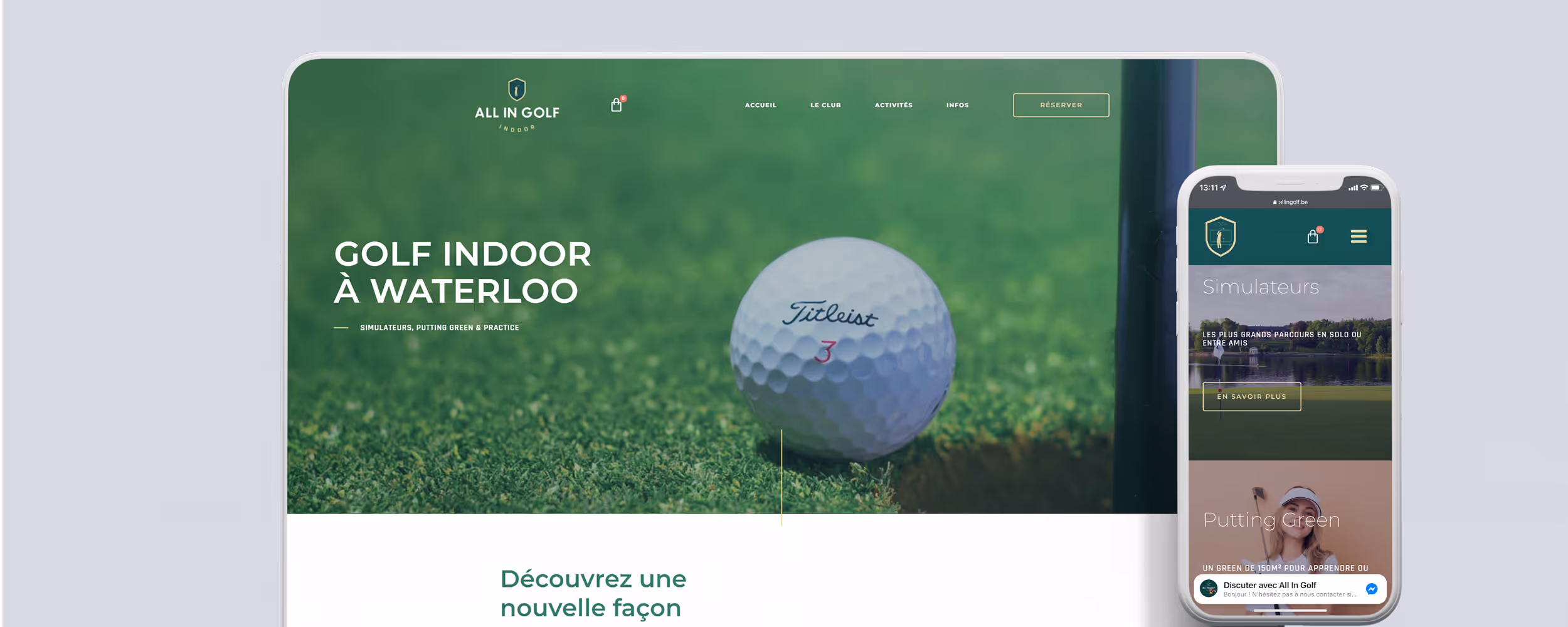 Fabergast assisted All In Golf's launch by developing the brand's identity, website, and reservation system. Aimed at attracting a wide audience, the brand fosters a culture of golf discovery, practice, and camaraderie. Despite the challenges of the COVID-19 pandemic, All In Golf established itself as a go-to indoor golf facility in Brussels by 2022.